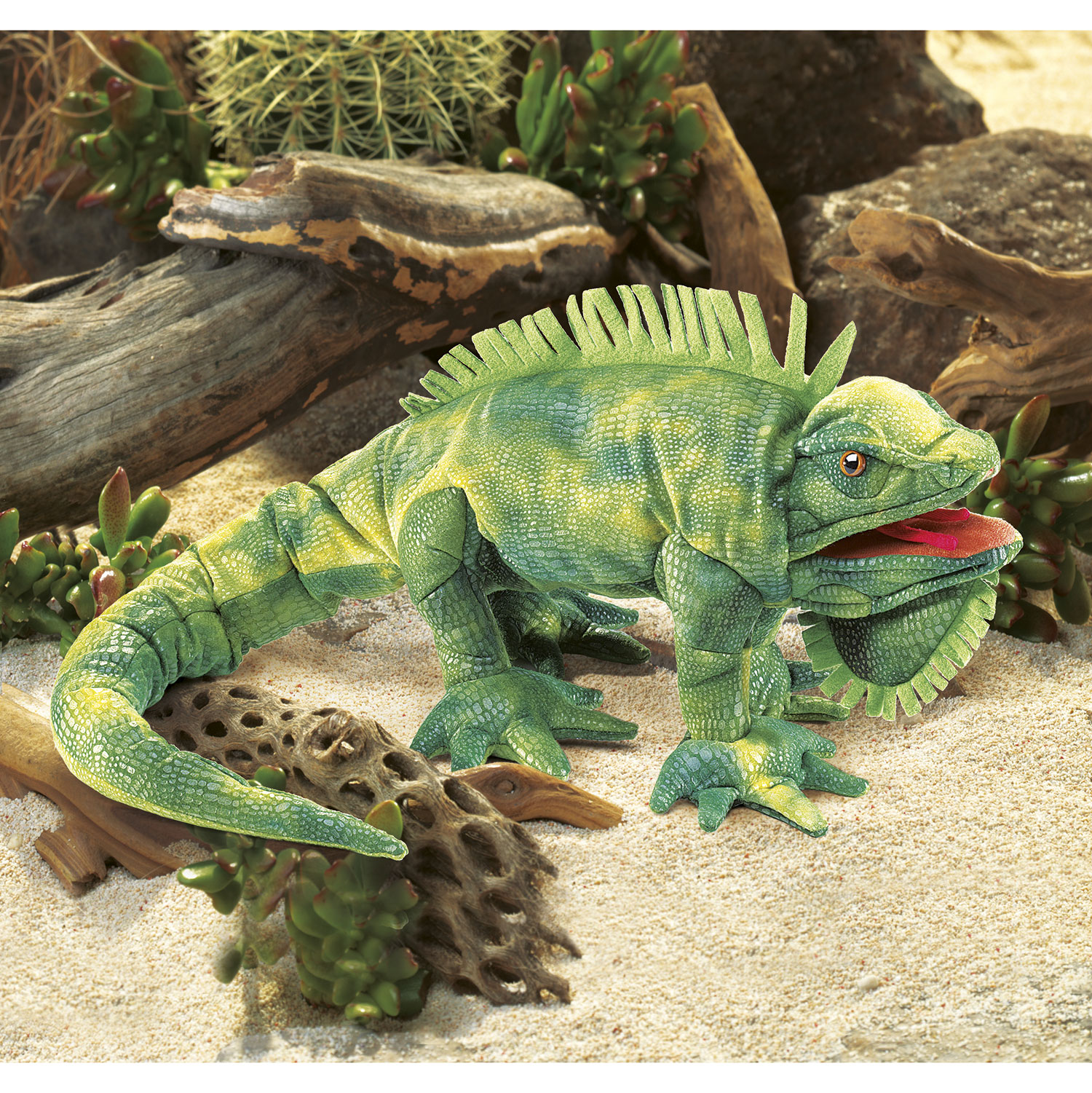 Dieser schöne grüne Leguan ist das perfekte Haustier für Echsenliebhaber! Sie können die Zunge, die Kiefer und die Vorderbeine dieser naturgetreuen und wendigen Handpuppe zum Leben erwecken. Der weiche, schuppige Körper fühlt sich toll an und wird sich nie häuten. Kopf, Maul, Zunge sind bespielbar