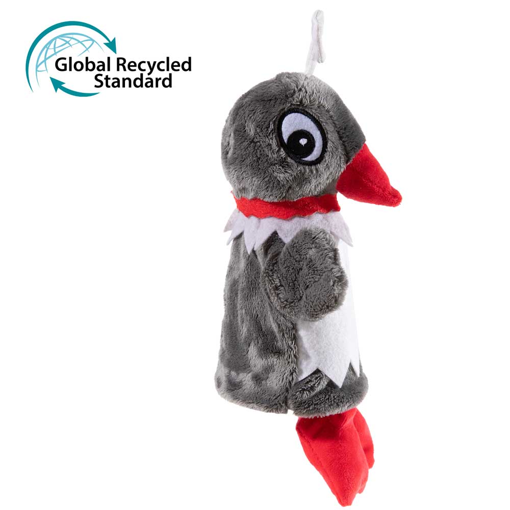 Die 27cm große Frau Elster Handpuppe ist aus recyceltem GRS-Material gefertigt und superweich gefüllt.