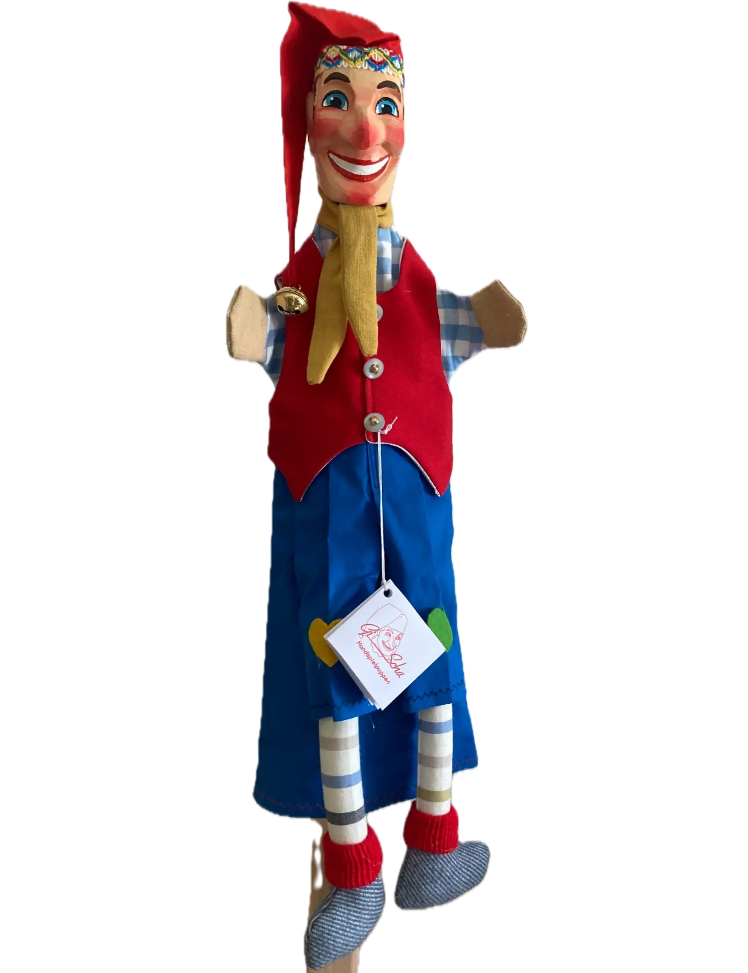 Einer der schönsten Kasperlefigugren von Scheithauer - der Herzkasperle mit liebevoller Bemalung in Handarbeit. Größe ca. 45cm, Die Bespielbarkeit ist gut für Erwachsene und Kinder geeignet. Der Herzkasper hat ein Herzchen auf der Hose und ein Glöckchen an der Mütze.