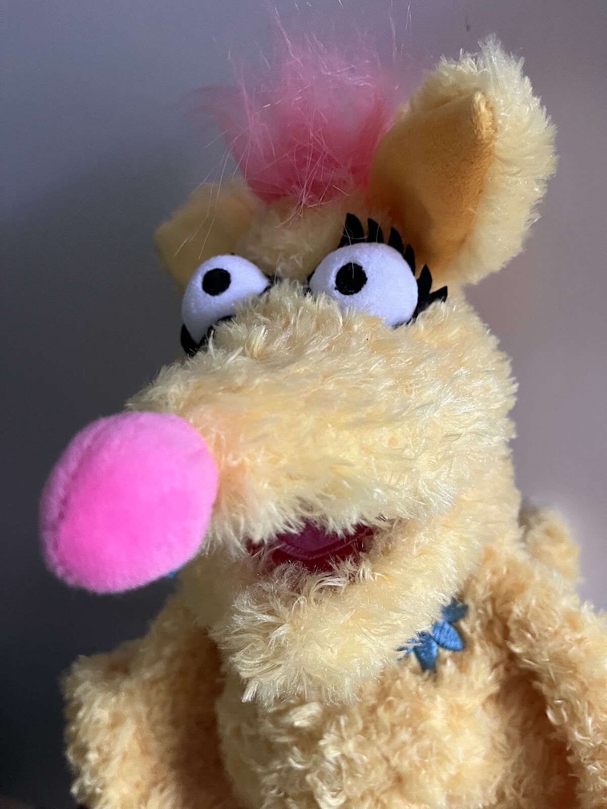 Handpuppe Woonie 45 cm. Bespielbar mit der Hand durch den Eingang am Kopf (Klappmaulprinzip) und mit der anderen Hand zeitgleich eine der Hände (wahlweise).