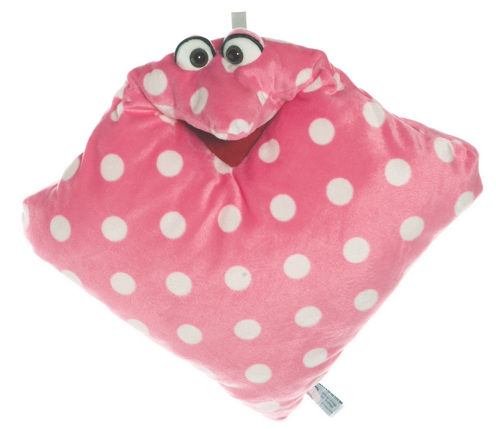 Einschlafhilfe, Kuschelkissen, Traumwünscher, Erzählkissen, sprechende Kissenhandpuppe, Anti-Alptraum-Kissen, Vorlesekissen, Zu-Bett-Bring-Hilfe-Kissen, Plappermaul mit Schmusevorrichtung, Zauberkissen für gute Träume, sprechende weiche Kopfunterlage, Traum-Aufpasser, Schlafhilfekissen